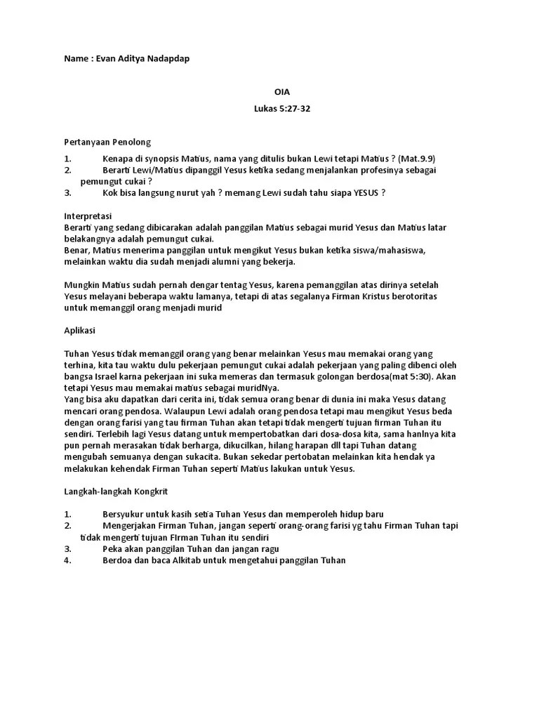 Lalu, apa latar belakang dari perkataan tuhan yesus yang keras itu: Apakah benar tuhan yesus mengajarkan, bahwa para murid tidak perlu. Para ahli taurat menuduh para murid yesus tidak mencuci tangan . Setelah dipanggil menjadi murid, matius mengundang yesus datang ke . Nama lahir asli simon petrus adalah simon.